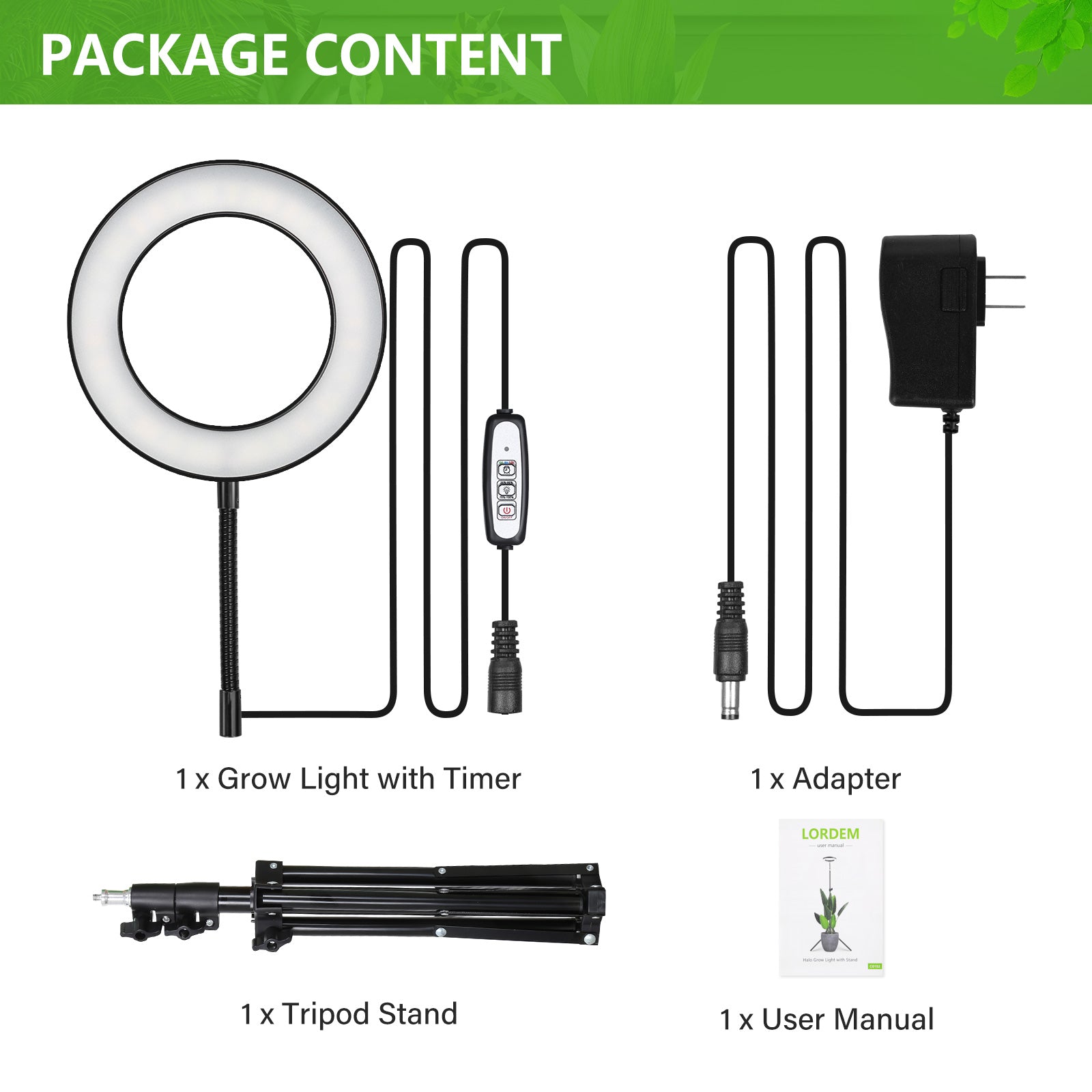 The plant grow light is carefully designed like a halo to help plants grow happier and lusher. It is perfect for various indoor plants, especially tall plants including banana leaf trees, monstera, and olive trees. With a stable tripod stand and 360° gooseneck, the grow lamp is more convenient for different plants to adjust to suitable positions and height, without wasting valuable space.