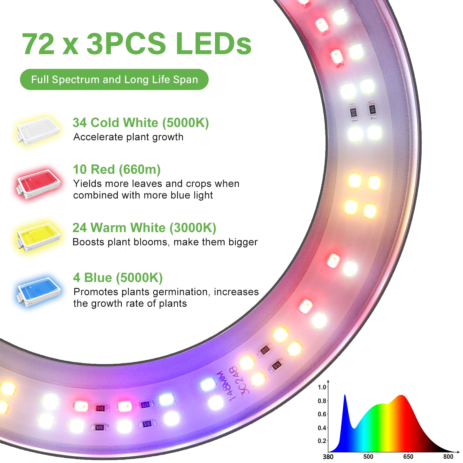 Our plant light emits light including all wavelengths, from blue to red and even ultraviolet, ensuring your plants receive the nutrients they need at every growth stage. No more worries about insufficient sunlight; let them thrive in a cozy indoor environment. With 72 efficient LEDs, it also provides high LUMER & PAR to give your plants the perfect amount of light from seedlings to growth and flowering stages.