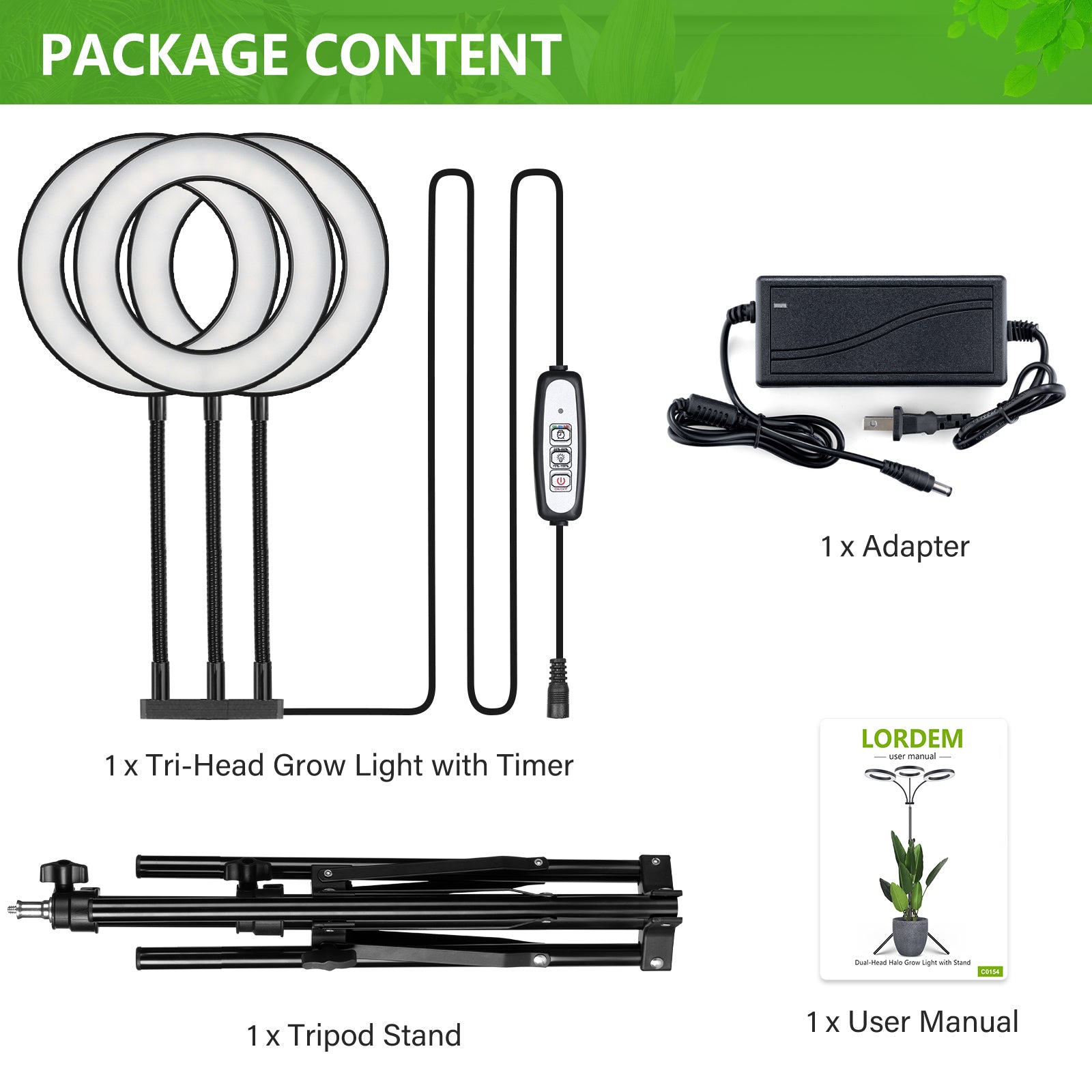FOXGARDEN 6.3'' Diameter Halo Plant Light with Stand Tri-head