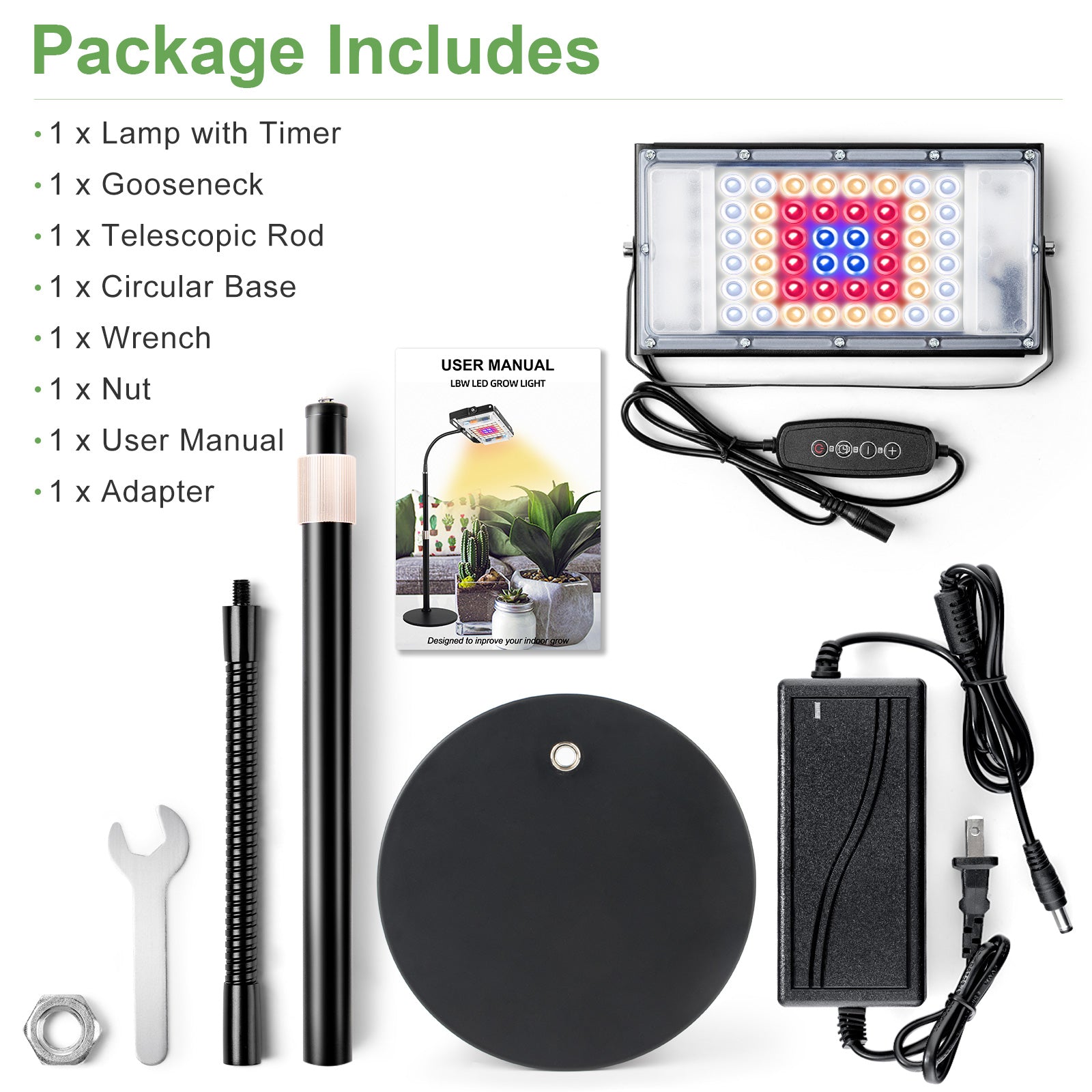 Widely apply to indoor plant seedlings/breeding, potted plants, vegetables, succulents, etc. Perfect solution for desktop, dark corner in house, living room, office. 12 months warranty plus 30 days satisfaction or return guarantee, 100% money back. Contact us first if any issues and we will make it OK.