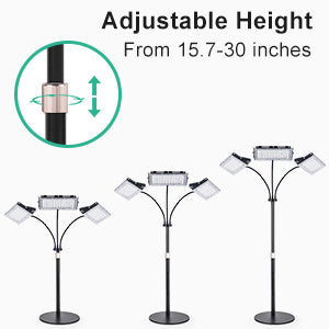 This LED grow light is equipped with a durable and sturdy telescopic rod and can be adjusted from 15-30 inches, which can shine more plants of different heights. It is also designed with a stable base, suitable for any desktop or countertop. With the sponge pad at the bottom, no scratches will be caused on your table. It is so stable that you just need to adjust the light to a desired height and angle.