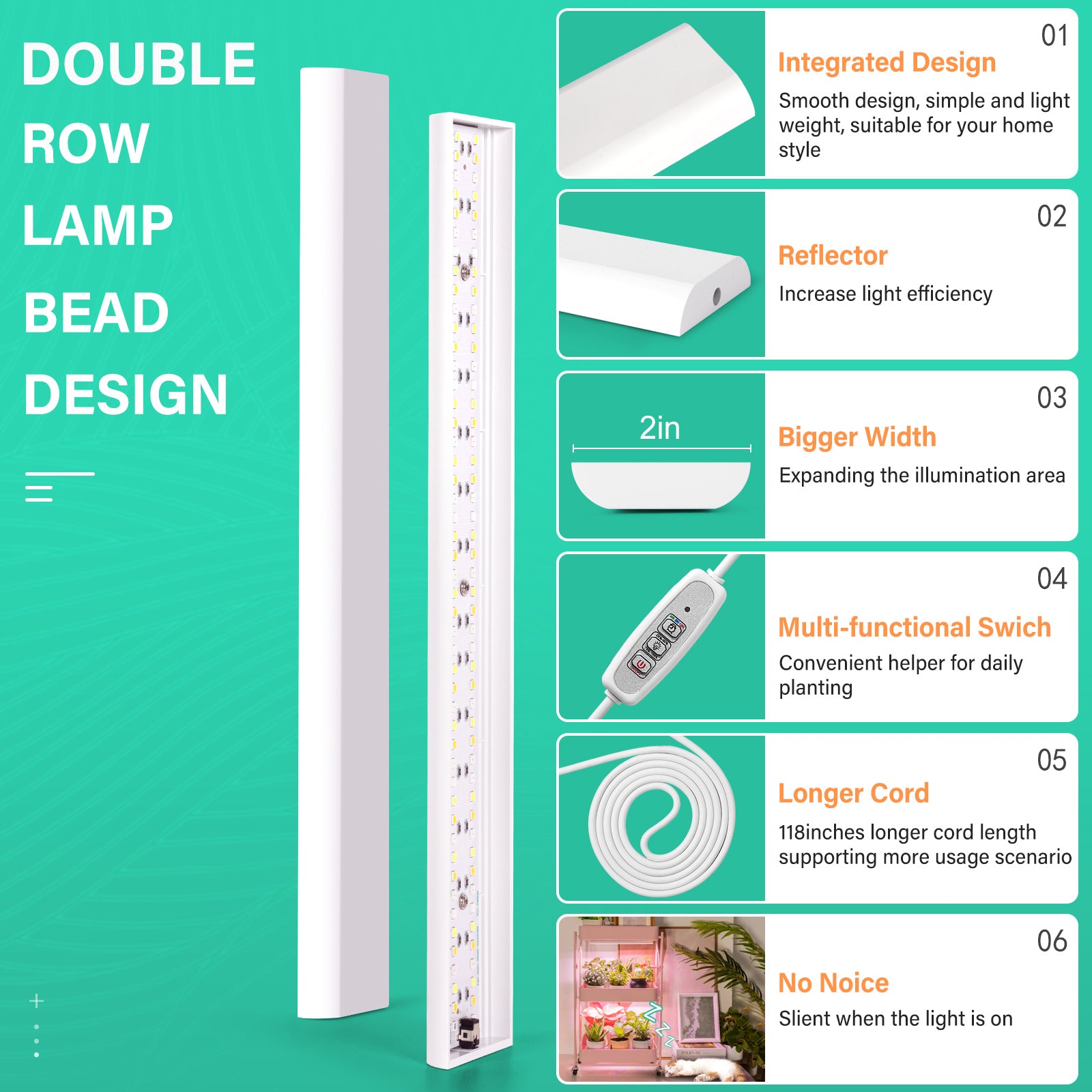 Our grow light strip is perfect for a wide range of indoor plants, including flowers, herbs, succulents, and more. Whether you have a small plant shelf or a larger indoor garden, our light strip caters to all-sized gardens. Provide your plants with the optimal lighting they need for healthy growth, flowering, and fruiting.
