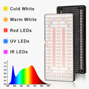 Superior Full SpectrumOur grow light offers a full spectrum of light, including red, blue, white, UV, and IR wavelengths. This comprehensive light spectrum is essential for promoting photosynthesis and plant growth and yield.