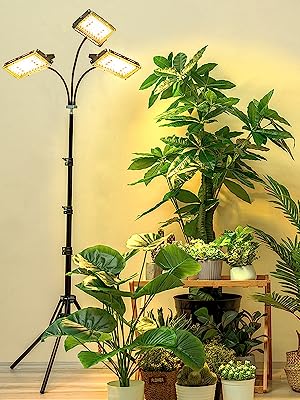 This indoor grow light has a flexible tri-head design, and is equipped with a tall & stable tripod stand extendable from 15 inches to 63 inches, which provides a larger illumination area for tall and large plants, and the gooseneck also makes it more flexible to use. You can set the grow light at any height and in any direction to get the desired illumination angle, it's ideal for all kinds of your plants at all growth stages.