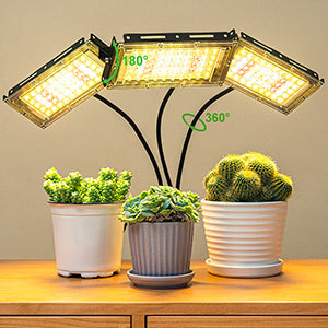 Tri-Head LampThe led grow light has three heads and is equipped with 150 high-powered LEDs, which covers a large lighting area and provides powerful light output. 360° adjustable gooseneck and 180° rotatable light panels provide a multi-lighting angle for your plant's growth.