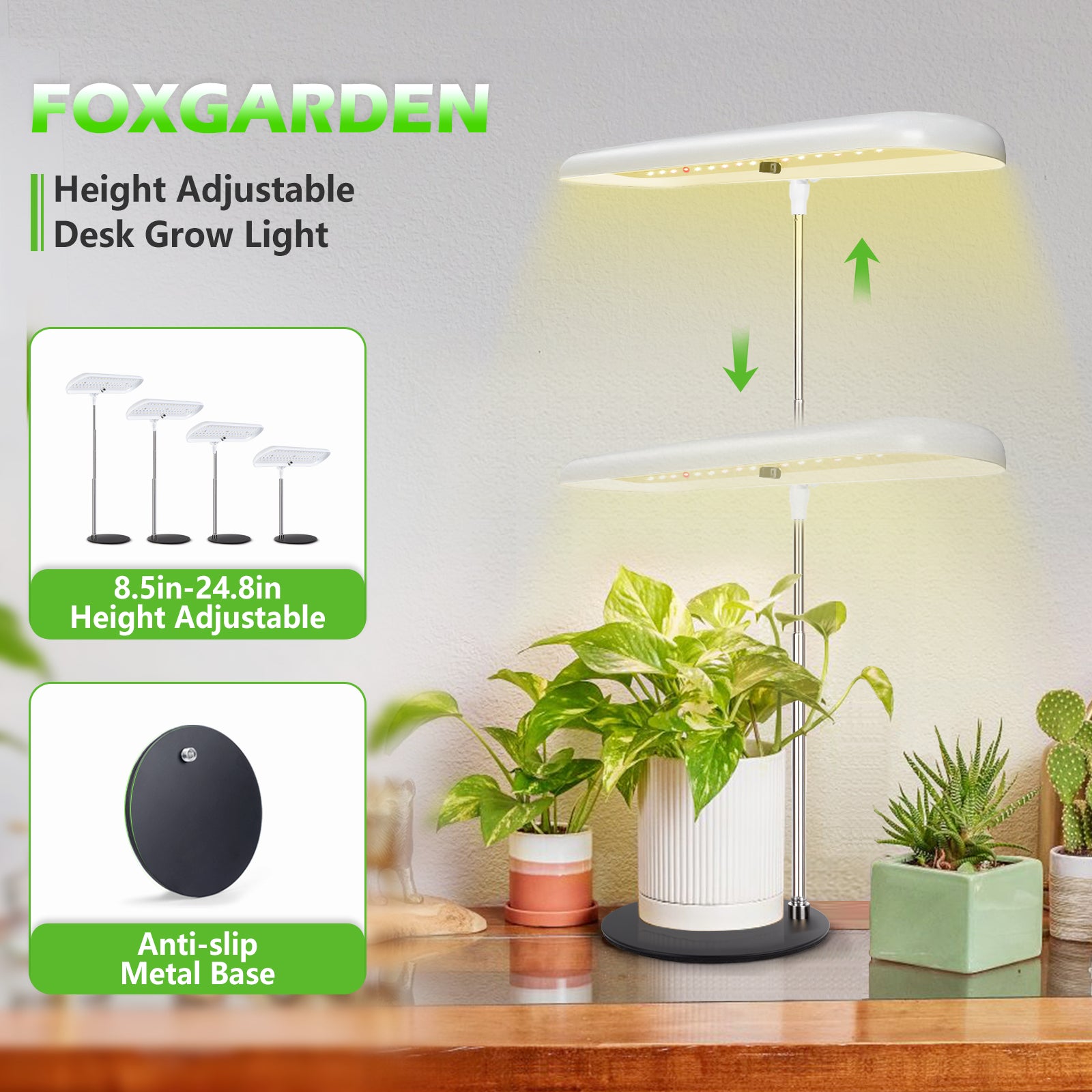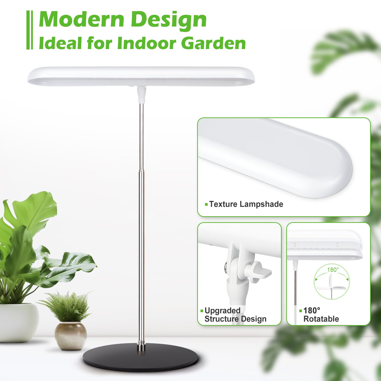 This indoor grow lamp features a sturdy metal base, reinforced with a non-slip foam layer underneath, ensuring exceptional stability and preventing accidental tipping. You can rest assured that the product will remain steady and secure, providing a safe environment for your plants to flourish.
